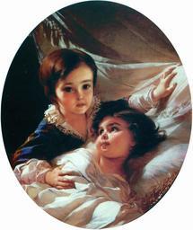 | Keywords: Two children of Tolstoy family by I.Makarov (1854).jpg Иван ака ов По т ет двух детей из семьи Толстых 1854 ГР http //www artscroll ru/page php al Makarov_Ivan_Kuzmich_hudozhnik 1854 Ivan Makarov Portraits of children by Ivan Makarov Files uploaded by Shakko from various sources 1850s portrait paintings 1850s portraits of Russia PD-Art 1854 paintings from Russia House of Tolstoy Ivan Makarov 2012 exhibition Pushkin museum 19th-century portraits in the Russian Museum 19th-century oval portraits of children |