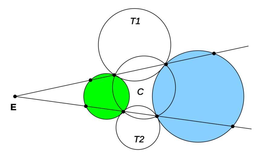 MAKE A MEME View Large Image Two circles tangent radical.svg en If E is the homothetic center of two given circles then E belongs to the radical axis of any two circles which are tangent to the given own Cleric K Circles with tangent