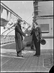| Keywords: Two men shaking hands on board the SS Mariposa in Sydney Harbour from The Powerhouse Museum.jpg A photo from the Tom Lennon Photographic Collection from the Powerhouse Museum Flickr-Powerhouse-Museum-image http //www flickr com/photos/powerhouse_museum/sets/72157607071380541/ circa 1930 1950 Tom Lennon Collection Author died more than 70 years ago - public domain PD-Australia Tom Lennon Collection Black and white photographs | ||||