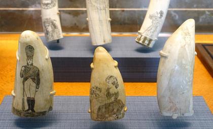 | View Original: | Two scrimshaw, c. 1850-1900, whale ivory, and one scrimshaw, c. 1880-1884, sperm whale ivory - San Francisco Maritime Museum - San Francisco, CA - DSC04086.jpg (5081x3101) | |||