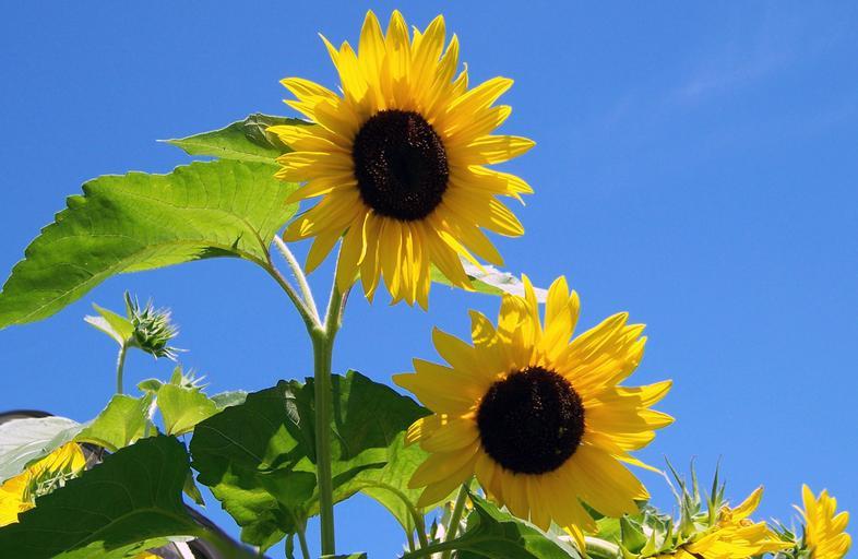 Keywords: sunflowers sunshine flower sun summer blue sky nature