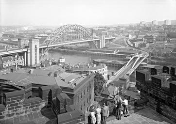 Keywords: newcastle upon tyne newcastleupontyne 1960s gateshead castle keep castlekeep tyne bridge tynebridge swing bridge swingbridge river tyne rivertyne quays scenic scenic views of newcastle scenicviewsofnewcastle august 1963 august1963 wonderful majestic impressive unusual interesting fascinating land north east of england northeastofengland united kingdom unitedkingdom turners ltd turnersltd bridge river city buildings bank daylight sky ground industry street view streetview digital image digitalimage black and white photograph blackandwhitephotograph brick wall roof window frame construction structure development premises businesses industrial social abstract shadow gathering people flag pole standing observing clothing crease hair blur grain stone social history socialhistory blackandwhite monochrome outdoor black and white A view of the Tyne Bridge and the Swing Bridge from the Castle Keep, Newcastle upon Tyne, August 1963 (TWAM ref. DT.TUR/2/31921L). Tyne & Wear Archives presents a series of images taken by the Newcastle-based photographers Turners Ltd. The firm had an excellent reputation and was regularly commissioned by local businesses to take photographs of their products and their premises. Turners also sometimes took aerial and street views on their own account and many of those images have survived, giving us a fascinating glimpse of life in the North East of England in the second half of the Twentieth Century. (Copyright) We're happy for you to share these digital images within the spirit of The Commons. Please cite 'Tyne & Wear Archives & Museums' when reusing. Certain restrictions on high quality reproductions and commercial use of the original physical version apply though; if you're unsure please email archives@twmuseums.org.uk A view of the Tyne Bridge and the Swing Bridge from the Castle Keep, Newcastle upon Tyne, August 1963 (TWAM ref. DT.TUR/2/31921L). Tyne & Wear Archives presents a series of images taken by the Newcastle-based photographers Turners Ltd. The firm had an excellent reputation and was regularly commissioned by local businesses to take photographs of their products and their premises. Turners also sometimes took aerial and street views on their own account and many of those images have survived, giving us a fascinating glimpse of life in the North East of England in the second half of the Twentieth Century. (Copyright) We're happy for you to share these digital images within the spirit of The Commons. Please cite 'Tyne & Wear Archives & Museums' when reusing. Certain restrictions on high quality reproductions and commercial use of the original physical version apply though; if you're unsure please email archives@twmuseums.org.uk |