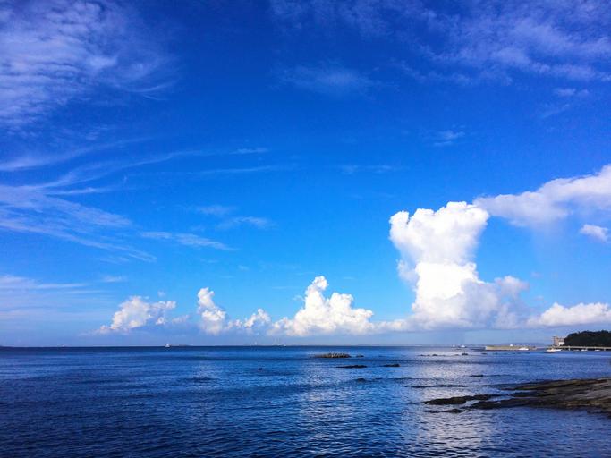 Keywords: typhoon towering cumulus clouds observed blue sky white cloud sea mabori kaigan yokosuka mirror japan