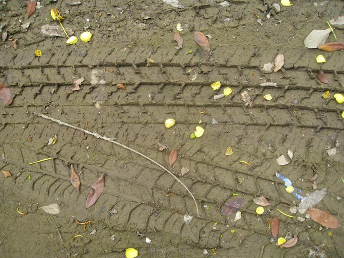 Keywords: tyre tracks tracks marks mud wet ground dirt earth soil brown