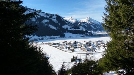 Keywords: tyrol tannheimertal grän winter snow sky blue panorama