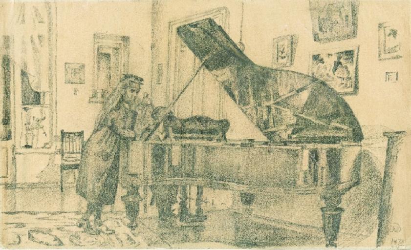 | Keywords: U royalya by Mstislav Dobuzhinsky (1914).jpg «У ояля» 1914 г бумага уголь Выставка «Семейный альбом» стислав Добужинский Гале ея на Ленивке 1914 стислав Добужинский PD-RusEmpire Mstislav Dobuzhinsky Files uploaded by Shakko from various sources Pianos in art |