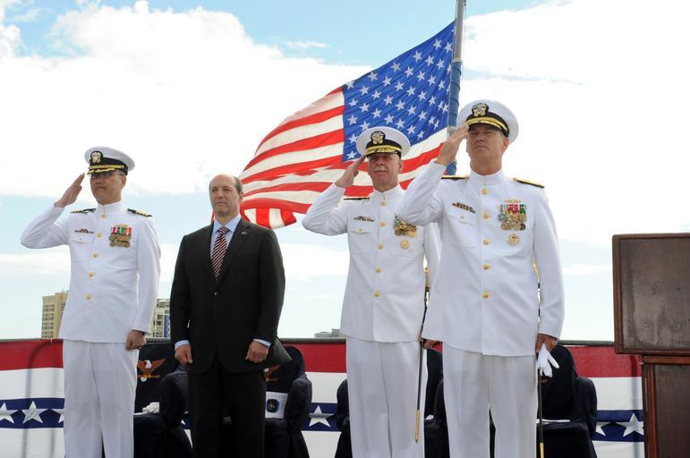 Keywords: U.S. 7th Fleet conducts a change of command. (9407621957).jpg CAIRNS Australia July 31 2013 Vice Adm Robert L Thomas Jr right salutes after taking command of the U S 7th Fleet alongside departing U S 7th Fleet commander Vice Adm Scott H Swift during a change of command ceremony aboard the U S 7th Fleet flagship USS Blue Ridge LCC 19 in Cairns Australia With Thomas and Swift are U S Ambassador to Australia Jeffrey Bleich and Capt John Shimotsu U S 7th Fleet Chaplain Blue Ridge and embarked U S 7th Fleet staff are on patrol operating forward building maritime partnerships and conducting security and stability operations U S Navy photo by Mass Communication Specialist 1st Class Joshua Karsten/Released 130731-N-GR655-387 Join the conversation http //www navy mil/viewGallery asp www navy mil/viewGallery asp http //www facebook com/USNavy www facebook com/USNavy http //www twitter com/USNavy www twitter com/USNavy http //navylive dodlive mil navylive dodlive mil http //pinterest com pinterest com https //plus google com plus google com http //www flickr com/photos/usnavy/9407621957/ U S 7th Fleet conducts a change of command 2013-07-31 09 43 http //www flickr com/people/56594044 N06 Official U S Navy Page from United States of America MC1 Joshua Karsten/U S Navy U S Navy photo PD-USGov-Military-Navy Official U S Navy Imagery http //flickr com/photos/56594044 N06/9407621957 2014-04-03 13 18 00 cc-by-2 0 Files uploaded by Russavia Files uploaded by Russavia Robert L Thomas Salutes |