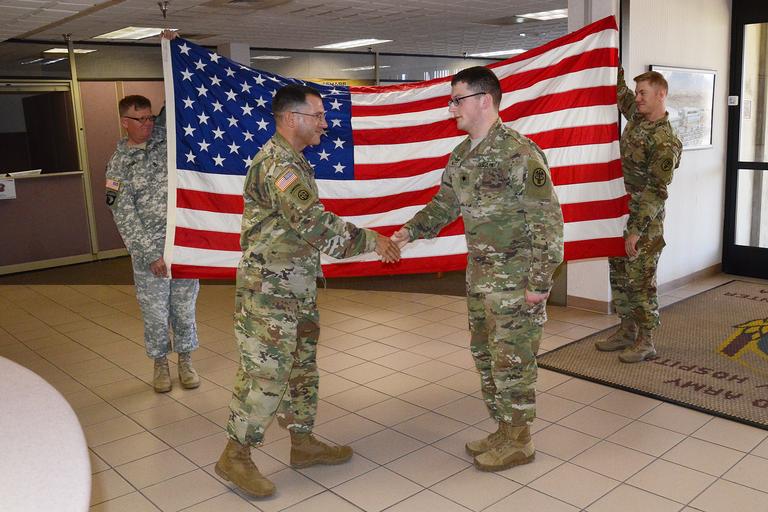 Keywords: fort irwin fortirwin weed army community hospital weedarmycommunityhospital national training center nationaltrainingcenter wach ntc meddac csm albert harris csmalbertharris specialist blake nutt specialistblakenutt col. martin doperak colmartindoperak treating patients like family treatingpatientslikefamily united states army unitedstatesarmy soldiers the box thebox mojave troop support troopsupport resiliency center resiliencycenter soldier readiness soldierreadiness health health benefits healthbenefits FORT IRWIN, Calif. – Col. Martin Doperak (left), Weed Army Community Hospital (WACH) Commander presided at the promotion ceremony of Specialist Blake Nutt in the lobby of the hospital main facility June 14. More than 25 colleagues and well-wishers were in attendance. This was the first promotion Doperak had carried out since his arrival June 6 and in his comments prior to the ceremony he remarked how happy he was to recognize the hard work and merit in WACH staff members such as Nutt. To learn more about the people and facilities of the Weed Army Community Hospital and the National Training Center at Fort Irwin visit the official WACH website at www.irwin.amedd.army.mil. Photo by Michael Beaton, Weed Army Community Hospital Public Affairs (Released). FORT IRWIN, Calif. – Col. Martin Doperak (left), Weed Army Community Hospital (WACH) Commander presided at the promotion ceremony of Specialist Blake Nutt in the lobby of the hospital main facility June 14. More than 25 colleagues and well-wishers were in attendance. This was the first promotion Doperak had carried out since his arrival June 6 and in his comments prior to the ceremony he remarked how happy he was to recognize the hard work and merit in WACH staff members such as Nutt. To learn more about the people and facilities of the Weed Army Community Hospital and the National Training Center at Fort Irwin visit the official WACH website at www.irwin.amedd.army.mil. Photo by Michael Beaton, Weed Army Community Hospital Public Affairs (Released). |