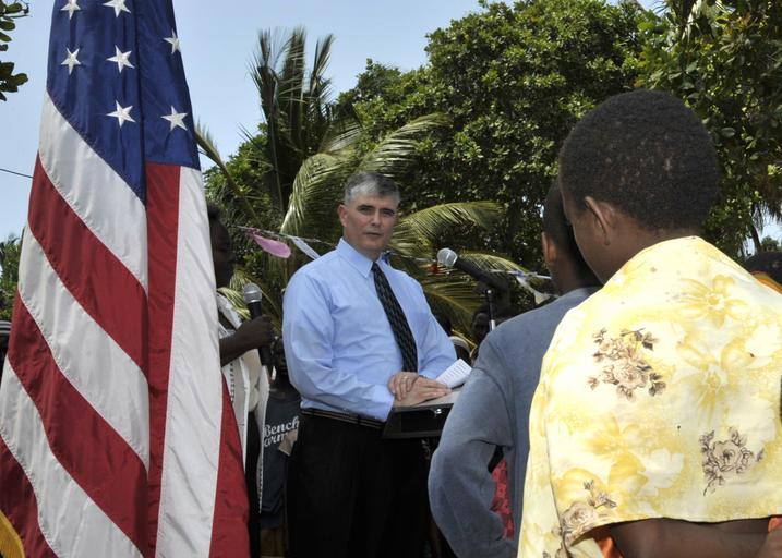 | Keywords: U.S. Embassy to Tanzania dedicates Tanga Water Well DVIDS259633.jpg en U S Army Brig Gen James Owens Combined Joint Task Force Horn of Africa deputy commander speaks at the ribbon cutting ceremony at the Putini-Chonoleani Village Well Dedication March 9 This is one of six wells that was constructed by Tanzanian contract company Hydrotech and financed by the U S government 2010-03-13 Petty Officer 3rd Class Tyler Wilson https //www dvidshub net/image/259633 100313-N-+++++-006 2010-03-13 11 37 TANGA TZ PD-USGov-Military-Navy Combined Joint Task Force - Horn of Africa Images from DoD uploaded by Fæ |