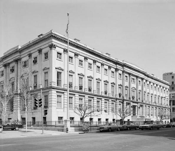 | Keywords: U.S. General Post Office, Between Seventh, Eighth, E, & F Streets, Northwest (Washington, District of Columbia).jpg U S General Post Office Between Seventh Eighth E F Streets Northwest Washington District of Columbia Photograph from the HABS ”Historic American Buildings Survey images of Washington D C cropped http //memory loc gov/cgi-bin/displayPhoto pl path /pnp/habshaer/dc/dc0200/dc0290/photos topImages 379096pr jpg topLinks 379096pv jpg 379096pu tif title HABS 20DC WASH 176-31 displayProfile 0 date submitted to the Library of Congress in 2002 Unknown Photographer Historic American Buildings Survey PD-USGov-Interior-HABS General Post Office Washington D C Historic American Buildings Survey of Washington D C Black and white photographs of Washington D C |