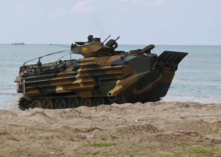 | Keywords: U.S., international forces conduct Cobra Gold exercise DVIDS249415.jpg en A Korean amphibious assault vehicle moves onto the beach during a simulated amphibious assault as part of exercise Cobra Gold 2010 The assault included Marines aircraft and landing crafts from the forward-deployed amphibious assault ship USS Essex the amphibious transport dock ship USS Denver and the dock landing ship USS Harper's Ferry CG 10 is a U S -Thai sponsored multinational exercise designed to enhance interoperability between U S and Pacific partner nations Essex is part of the forward-deployed Essex Amphibious Ready Group and is conducting spring patrol The Essex ARG is comprised of Amphibious Squadron Eleven Essex amphibious transport dock ship USS Denver dock landing ship USS Harpers Ferry and guided-missile cruiser USS Shiloh The Essex ARG has the 31st Marine Expeditionary Unit embarked and this group reports to Commander Amphibious Force Seventh Fleet Rear Adm Richard Landolt who is headquartered in Okinawa Japan 2010-02-04 https //www dvidshub net/image/249415 100204-N-+++++-574 2010-02-09 13 43 HAT YAO TH PD-USGov-Military-Navy 31st Marine Expeditionary Unit USS Essex LHD-2 USS Shiloh CG-67 Images from DoD uploaded by Fæ Amphibious Assault Vehicle in South Korea service |