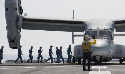 | Keywords: U.S. Marine Corps MV-22B Osprey aircraft work with Japan to deliver earthquake relief supplies. (26268629440).jpg KUMAMOTO Japan April 19 2016 Members of the Japan Maritime Self-Defense Force prepare to load supplies onto an MV-22B Osprey aircraft from Marine Medium Tilitrotor Squadron VMM 265 attached to the 31st Marine Expeditionary Unit in support of the Government of Japan's relief efforts following earthquakes near Kumamoto The long-standing alliance between Japan and the U S allows U S military forces in Japan to provide rapid integrated support to the Japan Self-Defense Force and civil relief efforts U S Navy Photo by Mass Communication Specialist 3rd Class Gabriel B Kotico/Released 160419-N-AE545-246 Join the conversation http //www navy mil/viewGallery asp www navy mil/viewGallery asp http //www facebook com/USNavy www facebook com/USNavy http //www twitter com/USNavy www twitter com/USNavy http //navylive dodlive mil navylive dodlive mil http //pinterest com pinterest com https //plus google com plus google com https //www flickr com/photos/usnavy/26268629440/ U S Marine Corps MV-22B Osprey aircraft work with Japan to deliver earthquake relief supplies 2016-04-19 13 38 https //www flickr com/people/56594044 N06 Official U S Navy Page from United States of America MC3 Gabriel B Kotico/U S Navy Attribution License IPTC Caption-Abstract U S Navy Photo PD-USGov-Military-Navy Official U S Navy Imagery https //flickr com/photos/56594044 N06/26268629440 2016-04-20 15 30 59 cc-by-2 0 2016 Kumamoto earthquake relief efforts JS Hyƫga DDH-181 MV-22B Osprey on flight decks Photographs taken on 2016-04-19 United States Forces Japan 160419-N-AE545-246 Navy Files from the U S Navy Flickr stream Front views of aircraft |