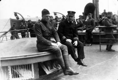 Keywords: blackandwhite monochrome black and white UA_558_07_14: U.S. Army and Navy Officer sit on deck of USS Sierra (ID-1634) after departing Ponta Delgada, Azores, following their departure from Europe during World War I. Lorelei Rockwell Collection. Naval History and Heritage Command Photograph. (2016/02/20). UA_558_07_14: U.S. Army and Navy Officer sit on deck of USS Sierra (ID-1634) after departing Ponta Delgada, Azores, following their departure from Europe during World War I. Lorelei Rockwell Collection. Naval History and Heritage Command Photograph. (2016/02/20). |