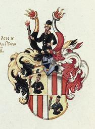 | Keywords: UBHD Cod Sal IX 58 039v Prandter.jpg Wappen aus dem Wappenbuch des Hofpfalzgrafen Franz Rasso Gotthardt Entstanden in Süddeutschland Passau Universitätsbibliothek Heidelberg Cod Sal IX 58 <br />Wappen Hanns Prandter Bürger und Gastgeb zu Passau bewilligt 8 April 1598 http //digi ub uni-heidelberg de/diglit/salIX58 after 1597 1623 “1631 Franz Rasso Gotthardt PD-old-100 Wappenbuch der Hofpfalzgrafen Coats of arms of families of Germany - P Prandter Torches in heraldry Men in crest Fire in crest Men in heraldry Bull horns in crest Argent gules Or sable in heraldry Quarterly shields Paly of 4 gules and argent Paly of 4 argent and gules |