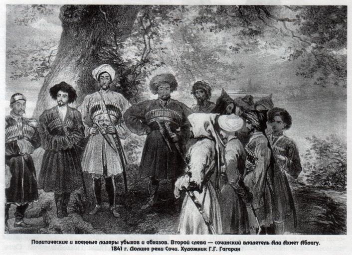 | Keywords: Ubykhi.jpg ru Политические и военные лиде ы убыхов в долине еки Сочи С ка тины усского художника Гага ина Г Г 1841 год en The Ubykh and Abkhazian leaders in the River Sochi valley 1841 Picture of known Russian artist Gagarin ~ 1841 http //sochionline 3dn ru/index/stranicy_proshlogo_i_nastojashhego_ubykhi/0-159 Creator Grigory Gagarin 100px 100px 100px PD-old-100-1923 1893 Uploaded with UploadWizard Ubykh people Historical images of Sochi Circassians with chokha Grigory Gagarin Nobility of tsardoms and regions of the Russian Empire Circassians in art Chokha with fur hat in art Fur fashion in 1841 |