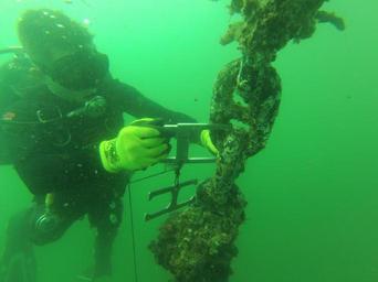 | Keywords: UCT-2 deep water mooring inspection 130926-N-ZZ999-001.jpg en Builder 2nd Class Matthew Dawson from Chicago assigned to Underwater Construction Team 2 inspecting a fleet mooring riser chain for wear with specialized equipment at Joint Base Pearl Harbor-Hickam Hawaii Seabee Divers from UCT 2's Construction Dive Detachment Bravo are at JBPHH inspecting and repairing more than 100 fleet mooring buoys during their second of three stops across the Pacific during their six-month deployment 2013-09-25 Photo by Steel Worker 2nd Class Metro Sayre https //www dvidshub net/image/1027022 130926-N-ZZ999-001 2013-09-27 19 25 PEARL HARBOR HI US PD-USGov-Military-Navy 2013 in Pearl Harbor People at Joint Base Pearl Harbor-Hickam Underwater photographs of scuba divers Images from DoD uploaded by Fæ |