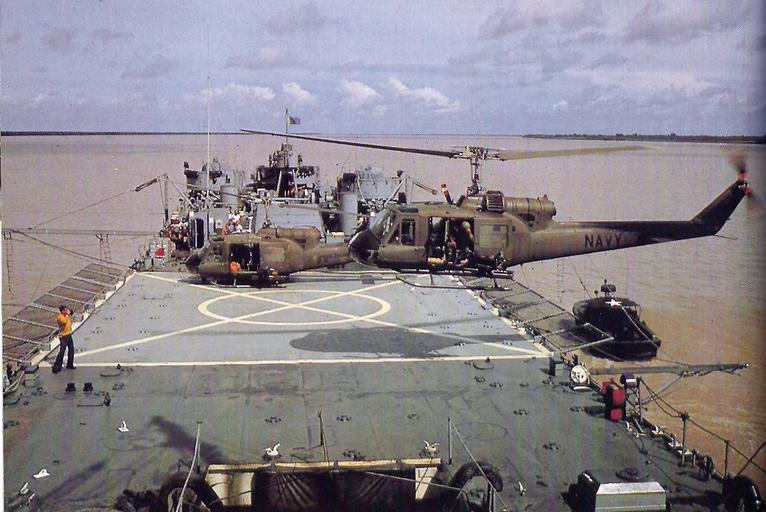 Keywords: UH-1E HAL-4 LST-821 Oct1967.jpg A Bell UH-1E Huey helicopter of U S Navy light helicopter attack squadron HAL-3 Seawolves landing on the converted tank landing ship USS Harnett County LST-821 between combat operations in the Mekong Delta Co Chien river South Vietnam in October 1967 A U S Army UH-1B is parked in the background Scan from Dana Bell Air War over Vietnam Volume IV Arms and Armour Press London Harrisburg PA 1984 ISBN 0853686351 p 36 Cites U S Navy as source 1967-10 USN PD-USGov Bell UH-1 Iroquois in the Vietnam War United States Army aviation in the Vietnam War United States Navy in the Vietnam War LST-821 Harnett County ship 1944 Helicopter Attack Squadron Light 3 United States Navy |