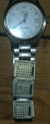 Keywords: Uhrarmbandkalender.jpg Uhrarmbandkalender own work papa1234 2006-10-14 2006-10-14 own assumed Papa1234 Wristwatches
