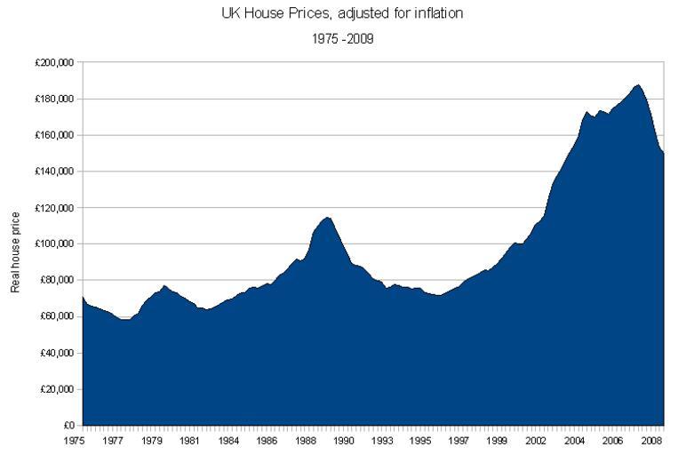 | Keywords: UK house prices adjusted for inflation.png en Chart of inflation-adjusted UK house prices 1975-2009 Data sourced from http //www nationwide co uk/hpi/historical htm Nationwide building society own Goose 2009-04-10 Macroeconomics Housing in the United Kingdom Money Financial economics Realty 2008 in the United Kingdom Graphics |