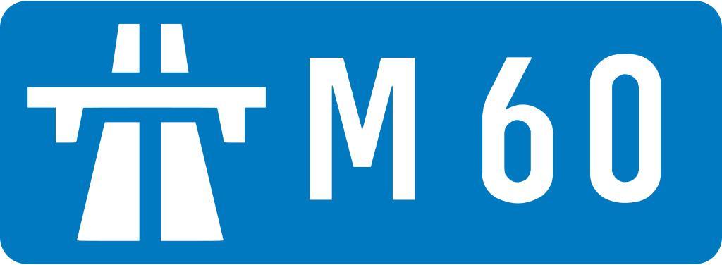 Keywords: UK-Motorway-M60.svg Motorway badge for the M60 motorway Own 2007-05-06 User Max Naylor British motorway plaques M60 motorway England 60 number