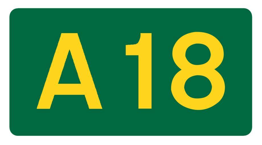 Keywords: UK road A18.svg en A18 own Mauls Diagrams of route signs of the United Kingdom 18 number