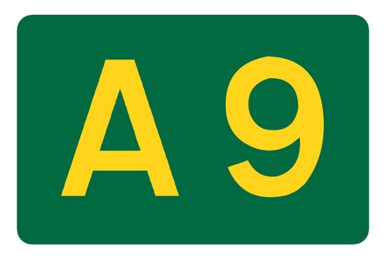 Keywords: UK road A9.svg en UK road number patch A9 own Mauls 2009-01 Diagrams of route signs of the United Kingdom 9 number A9 road Great Britain