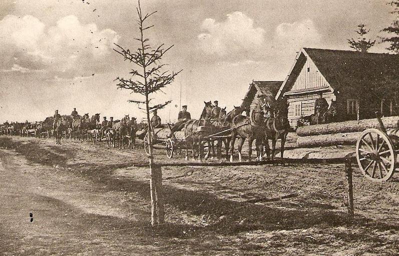 | Keywords: Ulatowo Czerniaki 1915.JPG pl Żołnierze landsturmu transportujący drewno do umocnień we wsi Ulatowo Czerniaki w powiecie przasnyskim podczas I wojny światowej Zbiory Mirosława Krejpowicza Feldpostkarte 1915 PD-old Battles of Przasnysz Gmina Krzynowłoga Mała |