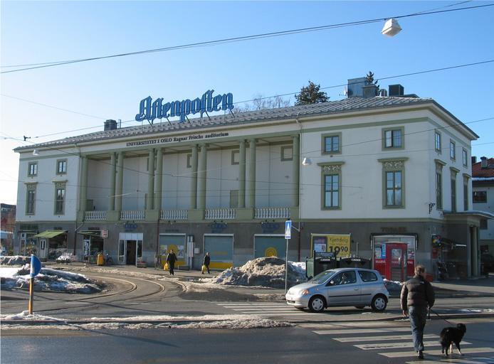 | Keywords: Ullevål Cinema.jpg en The former Ullevål Cinema at John Colletts plass Oslo Norway Various shops and cafes are housed on the ground floor whereas the building brandishes a huge ad for the newspaper Aftenposten on the roof The balloon loop of the Ullevål Hageby tramway line is also seen 163900 Own Punkmorten 2009-03-17 Universitetet i Oslo Ullevål hageby-linjen John Colletts plass Ullevål kino Cultural heritage monuments in Oslo | ||||