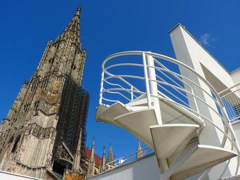 Keywords: ulm cathedral building church head blue sky stairs town home ulm architecture