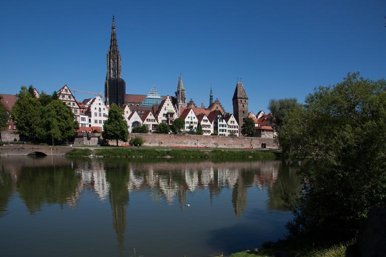 Keywords: ulm city building architecture city wall gothic middle ages monument sky danube mirroring river münster city tower ulm cathedral church high steeple