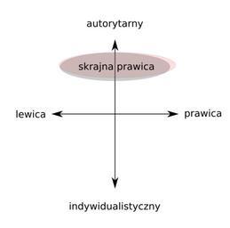 Keywords: Ultraprawica.svg pl Położenie skrajnej prawicy na schemacie dwuwymiarowym lewica-prawica autorytarny-indywidualistyczny Na podstawie J Steiner Demokracje europejskie Rzeszów 1993 s 83 own Mat86 2009-07-02 Political compass