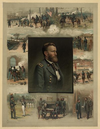 Keywords: Ulysses S. Grant from West Point to Appomattox unrestored.png wikitable This is the original unrestored version of File Ulysses S Grant from West Point to Appomattox jpg for purposes of documenting work and due to best practice A half-length portrait of Ulysses S Grant surrounded by nine scenes of his career from West Point graduation in 1843 to Lee's surrender in 1865 Clockwise from lower left Graduated at West Point 1843 - Gen Scott presenting diplomas In the tower at Chapultepec 1847 Drilling his Volunteers 1861 Fort Donelson 1862 The Battle of Shiloh 1862 The Siege of Vicksburg 1863 The Battle of Chattanooga 1863 Commander-in-Chief 1864 The Surrender of Gen Lee 1865 cph 3a32932 1885 Creator Thure de Thulstrup for L Prang Co Boston 1930 File Ulysses S Grant from West Point to Appomattox jpg JPG of restoration - This is what should be used for most purposes File Ulysses S Grant from West Point to Appomattox png PNG of restoration File File-Ulysses S Grant from West Point to Appomattox partially restored png PNG of partial restoration just before crop and colour adjustment File Ulysses S Grant from West Point to Appomattox unrestored png PNG of unrestored image File Ulysses S Grant from West Point to Appomattox unrestored jpg JPG of unrestored image to allow comparison Paintings of Ulysses S Grant Robert Edward Lee Abraham Lincoln in art Battle of Chapultepec Battle of Fort Donelson Mexican-American War Louis Prang Company Battle of Shiloh Siege of Vicksburg Battle of Chattanooga Horses of Mexico Thure de Thulstrup Soldiers in art |
