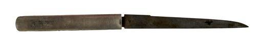 | Keywords: Umetada Narikazu - Kozuka with Waves - Walters 5111523 - Back.jpg  The waves carved in relief on this silver kozuka repeat the same motif used on other sword furniture in the suite This is part of a mounted set between 1629 1700 Edo silver cm 21 2 accession number 51 1152 3 32051 William T / Henry Walters Collection Baltimore date and mode of acquisition unknown Walters Art Museum Henry Walters Acquired by William T or Henry Walters Signature Umetada Narikazu place of origin Edo present-day Tokyo Japan Walters Art Museum license Tosogu Japanese sword fittings in the Walters Art Museum Umetada Narikazu Media contributed by the Walters Art Museum needs category review |