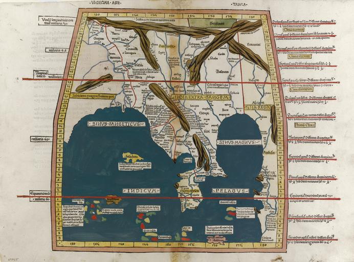 Keywords: Undecima Asie Tabula.jpg en The Eleventh Asian Map depicting India beyond the Ganges and the realm of the Sinae from the Ulm Ptolemy 1482 http //www sothebys com/en/auctions/ecatalogue/2012/travel-atlases-maps-natural-history-l12401/lot 197 html Sotheby's originally from the Ulm Ptolemy Ptolemy other versions PD-old-70-1923 1482 maps Ulm Ptolemy Asia 11 Ptolemy's 11th Asian Map 1482 Maps in Latin |