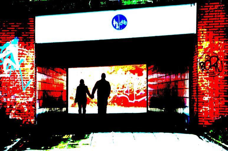 Keywords: underpass tunnel ulm city architecture away pair human walk two together togetherness for two lovers couple love holding hands hold hands personal