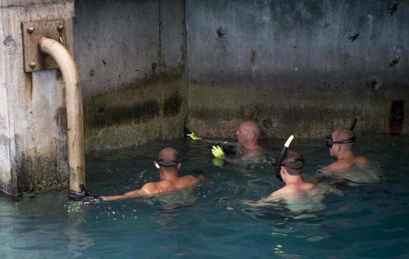 | Keywords: Underwater Construction Team (UCT) Two, Navy Divers from Mobile Diving and Salvage Unit (MDSU) One. 150119-N-OM642-085.jpg en Senior Chief Equipment Operator Emory Cole a Seabee Master Diver from Underwater Construction Team Two Port Hueneme Ca instructs Navy Divers from Mobile Diving and Salvage Unit One Pearl Harbor what to look for during a surface swim survey on a deep draft wharf at U S Navy Support Facility Diego Garcia Jan 19 During the survey Seabees from Underwater Construction Team Two Port Hueneme Ca and Navy Divers from Mobile Diving and Salvage Unit One Pearl Harbor are checking fenders and piles on the wharf to ensure they are structurally sound U S Navy photo by Mass Communication Specialist 1st Class Gary Keen/Released 2015-01-19 Lt j g Gary Keen https //www dvidshub net/image/1742936 150119-N-OM642-085 2015-01-30 00 02 DIEGO GARCIA IO PD-USGov-Military-Navy Mobile Diving and Salvage Unit 1 Images from DoD uploaded by Fæ |
