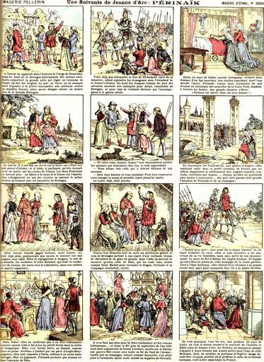 Keywords: UneSuivante deJeanne dArePERINAIK.jpg Périnaïk a follower of Joan of Arc a didactic 19th-century French cartoon which describes the story of two Breton women ” Périnaïk and her servant or companion ” who leave Brittany to become wandering groupies of Joan of Arc Lays much stress on the iniquity of the English ces maudits Saxons and on Catholic religiosity PD-Art 19th-century cartoons Engravings of Jeanne d'Arc Artworks missing infobox template |