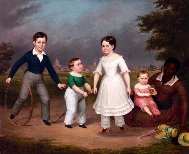 | Keywords: Unidentified artist - Robert, Calvin, Martha and William Scott and Mila - Google Art Project.jpg The children of Dr William Anderson Scott 1813-1885 an Old School Presbyterian clergyman in New Orleans Louisiana and their nurse Mila or Elmira The spire of the First Presbyterian Church where Dr Scott was pastor is visible at the center of the city ™s skyline Tax records indicate that a slave Mila was gifted to Scott's wife Ann by her father in 1830 http //deyoung famsf org/blog/galleries-robert-calvin-martha-and-william-scott-and-mila-ca-1843-1845http //connection ebscohost com/c/articles/51700230/black-white-shades-gray-picturing-identity-robert-calvin-martha-william-scott-nurse-mila Unidentified 719508 artist American /collection/de-young-museum/artwork/robert-calvin-martha-and-william-scott-and-mila-unidentified-artist/728003/ Unidentified artist Painter /artist/unidentified-artist/7375297/ 7375297 /collection/de-young-museum/ de Young Museum 677086 http //www deyoungmuseum org/ 1/28/2012 1 14 15 AM /collection/de-young-museum/artwork/robert-calvin-martha-and-william-scott-and-mila-unidentified-artist/728003/ 1843 990 6 728003 False 1845 ca 1843-1845 /collection/de-young-museum/level/second-floor/725073/ Second Floor 3/24/2012 10 10 28 AM 2008 14 Painting 1840 1850 City New Orleans Louisiana United States w1193 x h990 in ca 1843-1845 False 1 22781774580336 Object /collection/de-young-museum/level/second-floor/725073/gallery-23/721251/ Gallery 23 robert-calvin-martha-and-william-scott-and-mila-unidentified-artist Robert Calvin Martha and William Scott and Mila r 1193 8 Gift of Margaret Clifton Boyd and Cynthia Hollister Nagel special url_id BwFpUGKgPO1O3Q PD-old-70 Google Art Project works by unknown artist Playing children in art Servants in art 1840s portrait paintings Slaves in art |