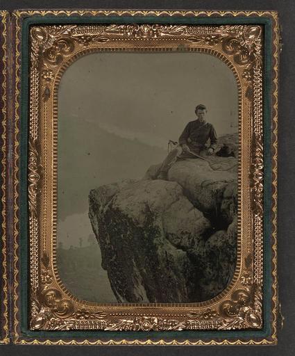 Keywords: library of congress libraryofcongress dc:identifier=http://hdl.loc.gov/loc.pnp/ppmsca.26987 dc:identifier=httphdllocgovlocpnpppmsca26987 xmlns:dc=http://purl.org/dc/elements/1.1/ xmlns:dc=httppurlorgdcelements11 tennessee point lookout pointlookout u.s. civil war uscivilwar american civil war americancivilwar the civil war thecivilwar civil war civilwar war between the states warbetweenthestates united states of america unitedstatesofamerica u.s.a. usa the union theunion union the north thenorth yankee yankees soldier sword sabre saber river tennessee river tennesseeriver photo border picture frame outdoor serene Linn, Royan M.,, photographer. [Unidentified soldier in Union officer's uniform at Point Lookout, Tennessee, sitting with cavalry saber in hand and slouch hat resting beside him on a rock] [1863?] 1 photograph : quarter-plate tintype, hand-colored ; 11.8 x 9.4 cm (case) Notes: Title devised by Library staff. Case: Leather geometric. Additional information in collections file. Photo shows an officer who posed for the Linns, who left Ohio to photograph the Army of the Cumberland. In late 1863, after the battles of Lookout Mountain and Missionary Ridge, the pair set up a studio near Point Lookout. Here they photographed the western Union armies as they concentrated for an advance on Atlanta. (Source: Matthew R. Gross and Elizabeth T. Lewin, 2010) Gift; Tom Liljenquist; 2010; (DLC/PP-2010:105). Purchased from: The Historical Shop, Metairie, La., 2008. Subjects: United States.--Army--People--1860-1870. Soldiers--Union--Tennessee--Lookout Mountain--1860-1870. Military uniforms--Union--1860-1870. Daggers & swords--1860-1870. United States--History--Civil War, 1861-1865--Military personnel--Union--Tennessee--Lookout Mountain. Format: Portrait photographs--1860-1870. Tintypes--Hand-colored--1860-1870. Rights Info: No known restrictions on publication. Repository: Library of Congress, Prints and Photographs Division, Washington, D.C. 20540 USA, hdl.loc.gov/loc.pnp/pp.print Part Of: Ambrotype/Tintype filing series (Library of Congress) (DLC) 2010650518 Liljenquist Family collection (Library of Congress) (DLC) 2010650519 More information about this collection is available at hdl.loc.gov/loc.pnp/pp.lilj Persistent URL: hdl.loc.gov/loc.pnp/ppmsca.26987 Call Number: AMB/TIN no. 2134 Linn, Royan M.,, photographer. [Unidentified soldier in Union officer's uniform at Point Lookout, Tennessee, sitting with cavalry saber in hand and slouch hat resting beside him on a rock] [1863?] 1 photograph : quarter-plate tintype, hand-colored ; 11.8 x 9.4 cm (case) Notes: Title devised by Library staff. Case: Leather geometric. Additional information in collections file. Photo shows an officer who posed for the Linns, who left Ohio to photograph the Army of the Cumberland. In late 1863, after the battles of Lookout Mountain and Missionary Ridge, the pair set up a studio near Point Lookout. Here they photographed the western Union armies as they concentrated for an advance on Atlanta. (Source: Matthew R. Gross and Elizabeth T. Lewin, 2010) Gift; Tom Liljenquist; 2010; (DLC/PP-2010:105). Purchased from: The Historical Shop, Metairie, La., 2008. Subjects: United States.--Army--People--1860-1870. Soldiers--Union--Tennessee--Lookout Mountain--1860-1870. Military uniforms--Union--1860-1870. Daggers & swords--1860-1870. United States--History--Civil War, 1861-1865--Military personnel--Union--Tennessee--Lookout Mountain. Format: Portrait photographs--1860-1870. Tintypes--Hand-colored--1860-1870. Rights Info: No known restrictions on publication. Repository: Library of Congress, Prints and Photographs Division, Washington, D.C. 20540 USA, hdl.loc.gov/loc.pnp/pp.print Part Of: Ambrotype/Tintype filing series (Library of Congress) (DLC) 2010650518 Liljenquist Family collection (Library of Congress) (DLC) 2010650519 More information about this collection is available at hdl.loc.gov/loc.pnp/pp.lilj Persistent URL: hdl.loc.gov/loc.pnp/ppmsca.26987 Call Number: AMB/TIN no. 2134 |