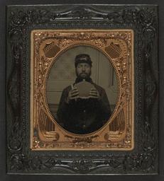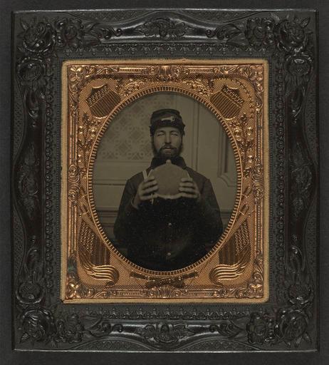 Keywords: library of congress libraryofcongress dc:identifier=http://hdl.loc.gov/loc.pnp/ppmsca.27519 dc:identifier=httphdllocgovlocpnpppmsca27519 xmlns:dc=http://purl.org/dc/elements/1.1/ xmlns:dc=httppurlorgdcelements11 u.s. civil war uscivilwar american civil war americancivilwar the civil war thecivilwar civil war civilwar war between the states warbetweenthestates united states of america unitedstatesofamerica u.s.a. usa the union theunion union the north thenorth yankee yankees soldier canteen people photo border [Unidentified soldier in Union uniform with canteen] [between 1861 and 1865] 1 photograph : sixth-plate ambrotype, hand-colored ; 12.3 x 11.1 cm (frame) Notes: Title devised by Library staff. Case: Berg, no. 7-42. Additional information in collections file. Gift; Tom Liljenquist; 2010; (DLC/PP-2010:105). Purchased from: Heritage Auction Galleries, Dallas, Texas, 2008, from John Henry Kurtz Collection of American Civil War History. Published in: O'Donnell, Mike. U.S. Army and militia canteens, 1775-1910. Alexandria, Va.: O'Donnell Publications, 2008, pp. 3 and 127. Subjects: United States.--Army--People--1860-1870. Soldiers--Union--1860-1870. Military uniforms--Union--1860-1870. Canteens--1860-1870. United States--History--Civil War, 1861-1865--Military personnel--Union. Format: Portrait photographs--1860-1870. Ambrotypes--Hand-colored--1860-1870. Rights Info: No known restrictions on publication. Repository: Library of Congress, Prints and Photographs Division, Washington, D.C. 20540 USA, hdl.loc.gov/loc.pnp/pp.print Part Of: Ambrotype/Tintype filing series (Library of Congress) (DLC) 2010650518 Liljenquist Family collection (Library of Congress) (DLC) 2010650519 More information about this collection is available at hdl.loc.gov/loc.pnp/pp.lilj Persistent URL: hdl.loc.gov/loc.pnp/ppmsca.27519 Call Number: AMB/TIN no. 5009 [Unidentified soldier in Union uniform with canteen] [between 1861 and 1865] 1 photograph : sixth-plate ambrotype, hand-colored ; 12.3 x 11.1 cm (frame) Notes: Title devised by Library staff. Case: Berg, no. 7-42. Additional information in collections file. Gift; Tom Liljenquist; 2010; (DLC/PP-2010:105). Purchased from: Heritage Auction Galleries, Dallas, Texas, 2008, from John Henry Kurtz Collection of American Civil War History. Published in: O'Donnell, Mike. U.S. Army and militia canteens, 1775-1910. Alexandria, Va.: O'Donnell Publications, 2008, pp. 3 and 127. Subjects: United States.--Army--People--1860-1870. Soldiers--Union--1860-1870. Military uniforms--Union--1860-1870. Canteens--1860-1870. United States--History--Civil War, 1861-1865--Military personnel--Union. Format: Portrait photographs--1860-1870. Ambrotypes--Hand-colored--1860-1870. Rights Info: No known restrictions on publication. Repository: Library of Congress, Prints and Photographs Division, Washington, D.C. 20540 USA, hdl.loc.gov/loc.pnp/pp.print Part Of: Ambrotype/Tintype filing series (Library of Congress) (DLC) 2010650518 Liljenquist Family collection (Library of Congress) (DLC) 2010650519 More information about this collection is available at hdl.loc.gov/loc.pnp/pp.lilj Persistent URL: hdl.loc.gov/loc.pnp/ppmsca.27519 Call Number: AMB/TIN no. 5009 |