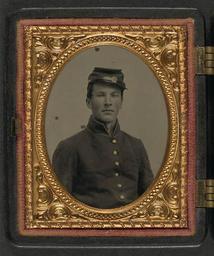 Keywords: library of congress libraryofcongress dc:identifier=http://hdl.loc.gov/loc.pnp/ppmsca.26970 dc:identifier=httphdllocgovlocpnpppmsca26970 xmlns:dc=http://purl.org/dc/elements/1.1/ xmlns:dc=httppurlorgdcelements11 u.s. civil war uscivilwar american civil war americancivilwar the civil war thecivilwar civil war civilwar war between the states warbetweenthestates united states of america unitedstatesofamerica u.s.a. usa the union theunion union the north thenorth yankee yankees soldier soldiersnpm people picture frame photo border [Unidentified soldier in Union uniform with forage cap] [between 1861 and 1865] 1 photograph : ninth-plate ambrotype, hand-colored ; 7.6 x 6.4 cm (case) Notes: Title devised by Library staff. Case: Berg, no. 2-103. Gift; Tom Liljenquist; 2010; (DLC/PP-2010:105). Purchased from: Lee's Headquarters, Fredricksburg, Virginia, 2004. Subjects: United States.--Army--People--1860-1870. Soldiers--Union--1860-1870. Military uniforms--Union--1860-1870. United States--History--Civil War, 1861-1865--Military personnel--Union. Format: Portrait photographs--1860-1870. Ambrotypes--Hand-colored--1860-1870. Rights Info: No known restrictions on publication. Repository: Library of Congress, Prints and Photographs Division, Washington, D.C. 20540 USA, hdl.loc.gov/loc.pnp/pp.print Part Of: Ambrotype/Tintype filing series (Library of Congress) (DLC) 2010650518 Liljenquist Family collection (Library of Congress) (DLC) 2010650519 More information about this collection is available at hdl.loc.gov/loc.pnp/pp.lilj Persistent URL: hdl.loc.gov/loc.pnp/ppmsca.26970 Call Number: AMB/TIN no. 2118 [Unidentified soldier in Union uniform with forage cap] [between 1861 and 1865] 1 photograph : ninth-plate ambrotype, hand-colored ; 7.6 x 6.4 cm (case) Notes: Title devised by Library staff. Case: Berg, no. 2-103. Gift; Tom Liljenquist; 2010; (DLC/PP-2010:105). Purchased from: Lee's Headquarters, Fredricksburg, Virginia, 2004. Subjects: United States.--Army--People--1860-1870. Soldiers--Union--1860-1870. Military uniforms--Union--1860-1870. United States--History--Civil War, 1861-1865--Military personnel--Union. Format: Portrait photographs--1860-1870. Ambrotypes--Hand-colored--1860-1870. Rights Info: No known restrictions on publication. Repository: Library of Congress, Prints and Photographs Division, Washington, D.C. 20540 USA, hdl.loc.gov/loc.pnp/pp.print Part Of: Ambrotype/Tintype filing series (Library of Congress) (DLC) 2010650518 Liljenquist Family collection (Library of Congress) (DLC) 2010650519 More information about this collection is available at hdl.loc.gov/loc.pnp/pp.lilj Persistent URL: hdl.loc.gov/loc.pnp/ppmsca.26970 Call Number: AMB/TIN no. 2118 |