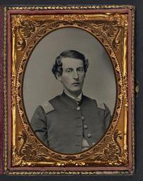 | Keywords: library of congress libraryofcongress dc:identifier=http://hdl.loc.gov/loc.pnp/ppmsca.27226 dc:identifier=httphdllocgovlocpnpppmsca27226 xmlns:dc=http://purl.org/dc/elements/1.1/ xmlns:dc=httppurlorgdcelements11 picture frame people photo border round [Unidentified soldier in Union captain's shell jacket] [between 1861 and 1865] 1 photograph : quarter-plate tintype, hand-colored ; 12.8 x 9.3 cm (case) Notes: Title devised by Library staff. Case: Leather rounded case with horizonal floral bands. Gift; Tom Liljenquist; 2010; (DLC/PP-2010:105). Purchased from: The Horse Soldier, Gettysburg, Pennsylvania , 2006. Subjects: United States.--Army--People--1860-1870. Soldiers--Union--1860-1870. Military uniforms--Union--1860-1870. United States--History--Civil War, 1861-1865--Military personnel--Union. Format: Portrait photographs--1860-1870. Tintypes--Hand-colored--1860-1870. Rights Info: No known restrictions on publication. Repository: Library of Congress, Prints and Photographs Division, Washington, D.C. 20540 USA, hdl.loc.gov/loc.pnp/pp.print Part Of: Ambrotype/Tintype filing series (Library of Congress) (DLC) 2010650518 Liljenquist Family collection (Library of Congress) (DLC) 2010650519 More information about this collection is available at hdl.loc.gov/loc.pnp/pp.lilj Persistent URL: hdl.loc.gov/loc.pnp/ppmsca.27226 Call Number: AMB/TIN no. 2364 [Unidentified soldier in Union captain's shell jacket] [between 1861 and 1865] 1 photograph : quarter-plate tintype, hand-colored ; 12.8 x 9.3 cm (case) Notes: Title devised by Library staff. Case: Leather rounded case with horizonal floral bands. Gift; Tom Liljenquist; 2010; (DLC/PP-2010:105). Purchased from: The Horse Soldier, Gettysburg, Pennsylvania , 2006. Subjects: United States.--Army--People--1860-1870. Soldiers--Union--1860-1870. Military uniforms--Union--1860-1870. United States--History--Civil War, 1861-1865--Military personnel--Union. Format: Portrait photographs--1860-1870. Tintypes--Hand-colored--1860-1870. Rights Info: No known restrictions on publication. Repository: Library of Congress, Prints and Photographs Division, Washington, D.C. 20540 USA, hdl.loc.gov/loc.pnp/pp.print Part Of: Ambrotype/Tintype filing series (Library of Congress) (DLC) 2010650518 Liljenquist Family collection (Library of Congress) (DLC) 2010650519 More information about this collection is available at hdl.loc.gov/loc.pnp/pp.lilj Persistent URL: hdl.loc.gov/loc.pnp/ppmsca.27226 Call Number: AMB/TIN no. 2364 |