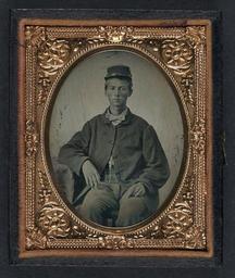 Keywords: library of congress libraryofcongress dc:identifier=http://hdl.loc.gov/loc.pnp/ppmsca.27406 dc:identifier=httphdllocgovlocpnpppmsca27406 xmlns:dc=http://purl.org/dc/elements/1.1/ xmlns:dc=httppurlorgdcelements11 u.s. civil war uscivilwar american civil war americancivilwar the civil war thecivilwar civil war civilwar war between the states warbetweenthestates united states of america unitedstatesofamerica u.s.a. usa the union theunion union the north thenorth yankee yankees soldier people picture frame photo border [Unidentified soldier in Union uniform] [between 1861 and 1865] 1 photograph : ninth-plate ambrotype, hand-colored ; 7.3 x 6.1 cm (case) Notes: Title devised by Library staff. Case: Leather geometric scroll. Gift; Tom Liljenquist; 2010; (DLC/PP-2010:105). Subjects: United States.--Army.--People--1860-1870. Soldiers--Union--1860-1870. Military uniforms--Union--1860-1870. United States--History--Civil War, 1861-1865--Military personnel--Union. Format: Portrait photographs--1860-1870. Ambrotypes--Hand-colored--1860-1870. Rights Info: No known restrictions on publication. Repository: Library of Congress, Prints and Photographs Division, Washington, D.C. 20540 USA, hdl.loc.gov/loc.pnp/pp.print Part Of: Ambrotype/Tintype filing series (Library of Congress) (DLC) 2010650518 Liljenquist Family collection (Library of Congress) (DLC) 2010650519 More information about this collection is available at hdl.loc.gov/loc.pnp/pp.lilj Persistent URL: hdl.loc.gov/loc.pnp/ppmsca.27406 Call Number: AMB/TIN no. 2541 [Unidentified soldier in Union uniform] [between 1861 and 1865] 1 photograph : ninth-plate ambrotype, hand-colored ; 7.3 x 6.1 cm (case) Notes: Title devised by Library staff. Case: Leather geometric scroll. Gift; Tom Liljenquist; 2010; (DLC/PP-2010:105). Subjects: United States.--Army.--People--1860-1870. Soldiers--Union--1860-1870. Military uniforms--Union--1860-1870. United States--History--Civil War, 1861-1865--Military personnel--Union. Format: Portrait photographs--1860-1870. Ambrotypes--Hand-colored--1860-1870. Rights Info: No known restrictions on publication. Repository: Library of Congress, Prints and Photographs Division, Washington, D.C. 20540 USA, hdl.loc.gov/loc.pnp/pp.print Part Of: Ambrotype/Tintype filing series (Library of Congress) (DLC) 2010650518 Liljenquist Family collection (Library of Congress) (DLC) 2010650519 More information about this collection is available at hdl.loc.gov/loc.pnp/pp.lilj Persistent URL: hdl.loc.gov/loc.pnp/ppmsca.27406 Call Number: AMB/TIN no. 2541 |