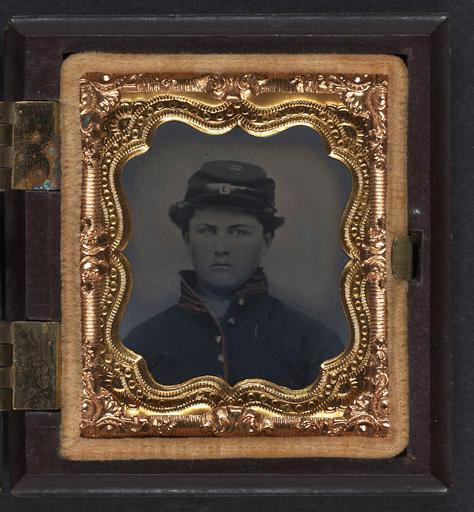 Keywords: library of congress libraryofcongress dc:identifier=http://hdl.loc.gov/loc.pnp/ppmsca.27464 dc:identifier=httphdllocgovlocpnpppmsca27464 xmlns:dc=http://purl.org/dc/elements/1.1/ xmlns:dc=httppurlorgdcelements11 picture frame people photo border [Unidentified soldier in Union uniform with red artillery piping and Company D forage cap] [between 1861 and 1865] 1 photograph : sixteenth-plate tintype, hand-colored ; 5.6 x 5.2 cm (case) Notes: Title devised by Library staff. Case: Berg, no. 3-480. Gift; Tom Liljenquist; 2010; (DLC/PP-2010:105). Subjects: United States.--Army.--People--1860-1870. Soldiers--Union--1860-1870. Military uniforms--Union--1860-1870. United States--History--Civil War, 1861-1865--Military personnel--Union. Format: Portrait photographs--1860-1870. Tintypes--Hand-colored--1860-1870. Rights Info: No known restrictions on publication. Repository: Library of Congress, Prints and Photographs Division, Washington, D.C. 20540 USA, hdl.loc.gov/loc.pnp/pp.print Part Of: Ambrotype/Tintype filing series (Library of Congress) (DLC) 2010650518 Liljenquist Family collection (Library of Congress) (DLC) 2010650519 More information about this collection is available at hdl.loc.gov/loc.pnp/pp.lilj Persistent URL: hdl.loc.gov/loc.pnp/ppmsca.27464 Call Number: AMB/TIN no. 2591 [Unidentified soldier in Union uniform with red artillery piping and Company D forage cap] [between 1861 and 1865] 1 photograph : sixteenth-plate tintype, hand-colored ; 5.6 x 5.2 cm (case) Notes: Title devised by Library staff. Case: Berg, no. 3-480. Gift; Tom Liljenquist; 2010; (DLC/PP-2010:105). Subjects: United States.--Army.--People--1860-1870. Soldiers--Union--1860-1870. Military uniforms--Union--1860-1870. United States--History--Civil War, 1861-1865--Military personnel--Union. Format: Portrait photographs--1860-1870. Tintypes--Hand-colored--1860-1870. Rights Info: No known restrictions on publication. Repository: Library of Congress, Prints and Photographs Division, Washington, D.C. 20540 USA, hdl.loc.gov/loc.pnp/pp.print Part Of: Ambrotype/Tintype filing series (Library of Congress) (DLC) 2010650518 Liljenquist Family collection (Library of Congress) (DLC) 2010650519 More information about this collection is available at hdl.loc.gov/loc.pnp/pp.lilj Persistent URL: hdl.loc.gov/loc.pnp/ppmsca.27464 Call Number: AMB/TIN no. 2591 |