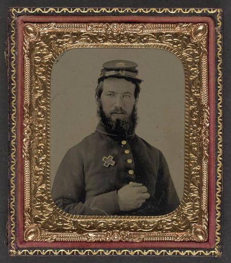 Keywords: library of congress libraryofcongress dc:identifier=http://hdl.loc.gov/loc.pnp/ppmsca.26890 dc:identifier=httphdllocgovlocpnpppmsca26890 xmlns:dc=http://purl.org/dc/elements/1.1/ xmlns:dc=httppurlorgdcelements11 u.s. civil war uscivilwar american civil war americancivilwar the civil war thecivilwar civil war civilwar war between the states warbetweenthestates united states of america unitedstatesofamerica u.s.a. usa the union theunion union the north thenorth yankee yankees soldier badge soldiersnpm picture frame people photo border [Unidentified soldier in Union uniform with 6th Corps badge] [between 1861 and 1865] 1 photograph : sixth-plate tintype, hand-colored ; 9.5 x 8.3 cm (case) Notes: Title devised by Library staff. Case: Leather geometric with diamond center. Gift; Tom Liljenquist; 2010; (DLC/PP-2010:105). Purchased from: Baltimore Civil War Show, 2009. Subjects: United States.--Army--People--1860-1870. Soldiers--Union--1860-1870. Military uniforms--Union--1860-1870. United States--History--Civil War, 1861-1865--Military personnel--Union. Format: Portrait photographs--1860-1870. Tintypes--Hand-colored--1860-1870. Rights Info: No known restrictions on publication. Repository: Library of Congress, Prints and Photographs Division, Washington, D.C. 20540 USA, hdl.loc.gov/loc.pnp/pp.print Part Of: Ambrotype/Tintype filing series (Library of Congress) (DLC) 2010650518 Liljenquist Family collection (Library of Congress) (DLC) 2010650519 More information about this collection is available at hdl.loc.gov/loc.pnp/pp.lilj Persistent URL: hdl.loc.gov/loc.pnp/ppmsca.26890 Call Number: AMB/TIN no. 2037 [Unidentified soldier in Union uniform with 6th Corps badge] [between 1861 and 1865] 1 photograph : sixth-plate tintype, hand-colored ; 9.5 x 8.3 cm (case) Notes: Title devised by Library staff. Case: Leather geometric with diamond center. Gift; Tom Liljenquist; 2010; (DLC/PP-2010:105). Purchased from: Baltimore Civil War Show, 2009. Subjects: United States.--Army--People--1860-1870. Soldiers--Union--1860-1870. Military uniforms--Union--1860-1870. United States--History--Civil War, 1861-1865--Military personnel--Union. Format: Portrait photographs--1860-1870. Tintypes--Hand-colored--1860-1870. Rights Info: No known restrictions on publication. Repository: Library of Congress, Prints and Photographs Division, Washington, D.C. 20540 USA, hdl.loc.gov/loc.pnp/pp.print Part Of: Ambrotype/Tintype filing series (Library of Congress) (DLC) 2010650518 Liljenquist Family collection (Library of Congress) (DLC) 2010650519 More information about this collection is available at hdl.loc.gov/loc.pnp/pp.lilj Persistent URL: hdl.loc.gov/loc.pnp/ppmsca.26890 Call Number: AMB/TIN no. 2037 |