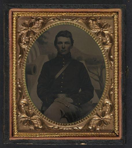 Keywords: library of congress libraryofcongress dc:identifier=http://hdl.loc.gov/loc.pnp/ppmsca.27306 dc:identifier=httphdllocgovlocpnpppmsca27306 xmlns:dc=http://purl.org/dc/elements/1.1/ xmlns:dc=httppurlorgdcelements11 people picture frame photo border [Unidentified soldier in Union uniform in front of painted backdrop showing military camp] [between 1861 and 1865] 1 photograph : sixth-plate tintype, hand-colored ; 9.3 x 8.2 cm (case) Notes: Title devised by Library staff. Case: Leather scroll. Additional information in collections file. Photograph shows hand-colored red piping on the collar of the uniform, possibly indicating artillery. Gift; Tom Liljenquist; 2010; (DLC/PP-2010:105). Subjects: United States.--Army.--People.--1860-1870. Soldiers--Union--1860-1870. Military uniforms--Union--1860-1870. Backdrops--1860-1870. United States--History--Civil War, 1861-1865--Military personnel--Union. Format: Portrait photographs--1860-1870. Tintypes--Hand-colored--1860-1870. Rights Info: No known restrictions on publication. Repository: Library of Congress, Prints and Photographs Division, Washington, D.C. 20540 USA, hdl.loc.gov/loc.pnp/pp.print Part Of: Ambrotype/Tintype filing series (Library of Congress) (DLC) 2010650518 Liljenquist Family collection (Library of Congress) (DLC) 2010650519 More information about this collection is available at hdl.loc.gov/loc.pnp/pp.lilj Persistent URL: hdl.loc.gov/loc.pnp/ppmsca.27306 Call Number: AMB/TIN no. 2443 [Unidentified soldier in Union uniform in front of painted backdrop showing military camp] [between 1861 and 1865] 1 photograph : sixth-plate tintype, hand-colored ; 9.3 x 8.2 cm (case) Notes: Title devised by Library staff. Case: Leather scroll. Additional information in collections file. Photograph shows hand-colored red piping on the collar of the uniform, possibly indicating artillery. Gift; Tom Liljenquist; 2010; (DLC/PP-2010:105). Subjects: United States.--Army.--People.--1860-1870. Soldiers--Union--1860-1870. Military uniforms--Union--1860-1870. Backdrops--1860-1870. United States--History--Civil War, 1861-1865--Military personnel--Union. Format: Portrait photographs--1860-1870. Tintypes--Hand-colored--1860-1870. Rights Info: No known restrictions on publication. Repository: Library of Congress, Prints and Photographs Division, Washington, D.C. 20540 USA, hdl.loc.gov/loc.pnp/pp.print Part Of: Ambrotype/Tintype filing series (Library of Congress) (DLC) 2010650518 Liljenquist Family collection (Library of Congress) (DLC) 2010650519 More information about this collection is available at hdl.loc.gov/loc.pnp/pp.lilj Persistent URL: hdl.loc.gov/loc.pnp/ppmsca.27306 Call Number: AMB/TIN no. 2443 |