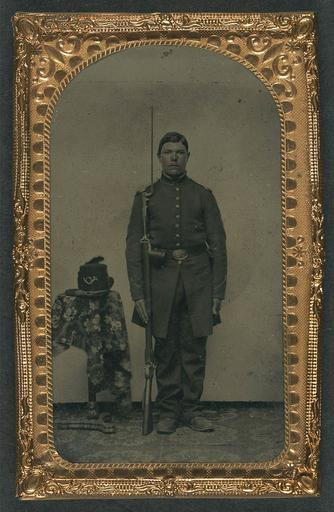 | Keywords: library of congress libraryofcongress dc:identifier=http://hdl.loc.gov/loc.pnp/ppmsca.27412 dc:identifier=httphdllocgovlocpnpppmsca27412 xmlns:dc=http://purl.org/dc/elements/1.1/ xmlns:dc=httppurlorgdcelements11 people picture frame photo border [Unidentified soldier in Union frock coat with bayoneted musket next to infantry Hardee hat with plume on table] [between 1861 and 1865] 1 photograph : carte de visite-plate tintype, hand-colored ; 8.7 x 5.5 cm (plate) Notes: Title devised by Library staff. Photograph shows headstand behind soldier's feet. Gift; Tom Liljenquist; 2010; (DLC/PP-2010:105). Subjects: United States.--Army.--People--1860-1870. Soldiers--Union--1860-1870. Military uniforms--Union--1860-1870. Rifles--1860-1870. Bayonets--1860-1870. United States--History--Civil War, 1861-1865--Military personnel--Union. Format: Group portraits--1860-1870. Portrait photographs--1860-1870. Tintypes--Hand-colored--1860-1870. Rights Info: No known restrictions on publication. Repository: Library of Congress, Prints and Photographs Division, Washington, D.C. 20540 USA, hdl.loc.gov/loc.pnp/pp.print Part Of: Ambrotype/Tintype filing series (Library of Congress) (DLC) 2010650518 Liljenquist Family collection (Library of Congress) (DLC) 2010650519 More information about this collection is available at hdl.loc.gov/loc.pnp/pp.lilj Persistent URL: hdl.loc.gov/loc.pnp/ppmsca.27412 Call Number: AMB/TIN no. 2547 [Unidentified soldier in Union frock coat with bayoneted musket next to infantry Hardee hat with plume on table] [between 1861 and 1865] 1 photograph : carte de visite-plate tintype, hand-colored ; 8.7 x 5.5 cm (plate) Notes: Title devised by Library staff. Photograph shows headstand behind soldier's feet. Gift; Tom Liljenquist; 2010; (DLC/PP-2010:105). Subjects: United States.--Army.--People--1860-1870. Soldiers--Union--1860-1870. Military uniforms--Union--1860-1870. Rifles--1860-1870. Bayonets--1860-1870. United States--History--Civil War, 1861-1865--Military personnel--Union. Format: Group portraits--1860-1870. Portrait photographs--1860-1870. Tintypes--Hand-colored--1860-1870. Rights Info: No known restrictions on publication. Repository: Library of Congress, Prints and Photographs Division, Washington, D.C. 20540 USA, hdl.loc.gov/loc.pnp/pp.print Part Of: Ambrotype/Tintype filing series (Library of Congress) (DLC) 2010650518 Liljenquist Family collection (Library of Congress) (DLC) 2010650519 More information about this collection is available at hdl.loc.gov/loc.pnp/pp.lilj Persistent URL: hdl.loc.gov/loc.pnp/ppmsca.27412 Call Number: AMB/TIN no. 2547 |