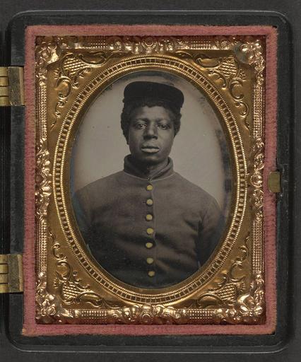 Keywords: library of congress libraryofcongress dc:identifier=http://hdl.loc.gov/loc.pnp/ppmsca.26880 dc:identifier=httphdllocgovlocpnpppmsca26880 xmlns:dc=http://purl.org/dc/elements/1.1/ xmlns:dc=httppurlorgdcelements11 u.s. civil war uscivilwar american civil war americancivilwar the civil war thecivilwar civil war civilwar war between the states warbetweenthestates united states of america unitedstatesofamerica u.s.a. usa the union theunion union the north thenorth yankee yankees soldier african american africanamerican people picture frame indoor photo border [Unidentified young African American soldier in Union uniform] [between 1863 and 1865] 1 photograph : ninth-plate tintype, hand-colored ; 7.5 x 6.5 cm (case) Notes: Title devised by Library staff. Case: (front) Berg, no. 1-130; (back) Berg, no. 3-301. Gift; Tom Liljenquist; 2010; (DLC/PP-2010:105). Purchased from: Barry A. Smith, Inc., Historical Americana, Greensboro, North Carolina. Subjects: United States.--Army--People--1860-1870. African Americans--Military service--1860-1870. Soldiers--Union--1860-1870. Military uniforms--Union--1860-1870. Youth--1860-1870. United States--History--Civil War, 1861-1865--Military personnel--Union. Format: Portrait photographs--1860-1870. Tintypes--Hand-colored--1860-1870. Rights Info: No known restrictions on publication. Repository: Library of Congress, Prints and Photographs Division, Washington, D.C. 20540 USA, hdl.loc.gov/loc.pnp/pp.print Part Of: Ambrotype/Tintype filing series (Library of Congress) (DLC) 2010650518 Liljenquist Family collection (Library of Congress) (DLC) 2010650519 More information about this collection is available at hdl.loc.gov/loc.pnp/pp.lilj Persistent URL: hdl.loc.gov/loc.pnp/ppmsca.26880 Call Number: AMB/TIN no. 2026 [Unidentified young African American soldier in Union uniform] [between 1863 and 1865] 1 photograph : ninth-plate tintype, hand-colored ; 7.5 x 6.5 cm (case) Notes: Title devised by Library staff. Case: (front) Berg, no. 1-130; (back) Berg, no. 3-301. Gift; Tom Liljenquist; 2010; (DLC/PP-2010:105). Purchased from: Barry A. Smith, Inc., Historical Americana, Greensboro, North Carolina. Subjects: United States.--Army--People--1860-1870. African Americans--Military service--1860-1870. Soldiers--Union--1860-1870. Military uniforms--Union--1860-1870. Youth--1860-1870. United States--History--Civil War, 1861-1865--Military personnel--Union. Format: Portrait photographs--1860-1870. Tintypes--Hand-colored--1860-1870. Rights Info: No known restrictions on publication. Repository: Library of Congress, Prints and Photographs Division, Washington, D.C. 20540 USA, hdl.loc.gov/loc.pnp/pp.print Part Of: Ambrotype/Tintype filing series (Library of Congress) (DLC) 2010650518 Liljenquist Family collection (Library of Congress) (DLC) 2010650519 More information about this collection is available at hdl.loc.gov/loc.pnp/pp.lilj Persistent URL: hdl.loc.gov/loc.pnp/ppmsca.26880 Call Number: AMB/TIN no. 2026 |