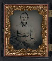 Keywords: library of congress libraryofcongress dc:identifier=http://hdl.loc.gov/loc.pnp/ppmsca.27176 dc:identifier=httphdllocgovlocpnpppmsca27176 xmlns:dc=http://purl.org/dc/elements/1.1/ xmlns:dc=httppurlorgdcelements11 picture frame people photo border [Unidentified young soldier Confederate uniform with kepi] [between 1861 and 1865] 1 photograph : sixth-plate ambrotype ; 9.4 x 8.4 cm (case) Notes: Title devised by Library staff. Case: Berg, no. 3-576. Additional information in collections file. Gift; Tom Liljenquist; 2010; (DLC/PP-2010:105). Published in: Serrano, D. A. Still more Confederate faces. Bayside, NY: Metropolitan Company, 1992, p. 44. Published in: David, William C. First blood: Fort Sumter to Bull Run. Alexandria, Va.: Time-Life Books, 1983, p. 106. Subjects: Confederate States of America.--Army--People--1860-1870. Soldiers--Confederate--1860-1870. Military uniforms--Confederate--1860-1870. Youth--1860-1870. United States--History--Civil War, 1861-1865--Military personnel--Confederate. Format: Portrait photographs--1860-1870. Ambrotypes--1860-1870. Rights Info: No known restrictions on publication. Repository: Library of Congress, Prints and Photographs Division, Washington, D.C. 20540 USA, hdl.loc.gov/loc.pnp/pp.print Part Of: Ambrotype/Tintype filing series (Library of Congress) (DLC) 2010650518 Liljenquist Family collection (Library of Congress) (DLC) 2010650519 More information about this collection is available at hdl.loc.gov/loc.pnp/pp.lilj Persistent URL: hdl.loc.gov/loc.pnp/ppmsca.27176 Call Number: AMB/TIN no. 2323 [Unidentified young soldier Confederate uniform with kepi] [between 1861 and 1865] 1 photograph : sixth-plate ambrotype ; 9.4 x 8.4 cm (case) Notes: Title devised by Library staff. Case: Berg, no. 3-576. Additional information in collections file. Gift; Tom Liljenquist; 2010; (DLC/PP-2010:105). Published in: Serrano, D. A. Still more Confederate faces. Bayside, NY: Metropolitan Company, 1992, p. 44. Published in: David, William C. First blood: Fort Sumter to Bull Run. Alexandria, Va.: Time-Life Books, 1983, p. 106. Subjects: Confederate States of America.--Army--People--1860-1870. Soldiers--Confederate--1860-1870. Military uniforms--Confederate--1860-1870. Youth--1860-1870. United States--History--Civil War, 1861-1865--Military personnel--Confederate. Format: Portrait photographs--1860-1870. Ambrotypes--1860-1870. Rights Info: No known restrictions on publication. Repository: Library of Congress, Prints and Photographs Division, Washington, D.C. 20540 USA, hdl.loc.gov/loc.pnp/pp.print Part Of: Ambrotype/Tintype filing series (Library of Congress) (DLC) 2010650518 Liljenquist Family collection (Library of Congress) (DLC) 2010650519 More information about this collection is available at hdl.loc.gov/loc.pnp/pp.lilj Persistent URL: hdl.loc.gov/loc.pnp/ppmsca.27176 Call Number: AMB/TIN no. 2323 |