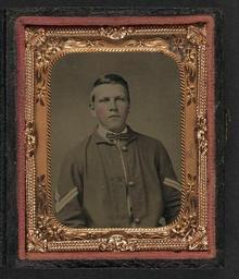 Keywords: library of congress libraryofcongress dc:identifier=http://hdl.loc.gov/loc.pnp/ppmsca.27447 dc:identifier=httphdllocgovlocpnpppmsca27447 xmlns:dc=http://purl.org/dc/elements/1.1/ xmlns:dc=httppurlorgdcelements11 u.s. civil war uscivilwar american civil war americancivilwar the civil war thecivilwar civil war civilwar war between the states warbetweenthestates united states of america unitedstatesofamerica u.s.a. usa the union theunion union the north thenorth yankee yankees soldier corporal people picture frame [Unidentified young soldier in Union corporal's uniform] [between 1861 and 1865] 1 photograph : ninth-plate ambrotype, hand-colored ; 7.3 x 6.2 cm (case) Notes: Title devised by Library staff. Case: Rinhart, no. 175. Gift; Tom Liljenquist; 2010; (DLC/PP-2010:105). Subjects: United States.--Army.--People--1860-1870. Soldiers--Union--1860-1870. Military uniforms--Union--1860-1870. United States--History--Civil War, 1861-1865--Military personnel--Union. Format: Portrait photographs--1860-1870. Ambrotypes--Hand-colored--1860-1870. Rights Info: No known restrictions on publication. Repository: Library of Congress, Prints and Photographs Division, Washington, D.C. 20540 USA, hdl.loc.gov/loc.pnp/pp.print Part Of: Ambrotype/Tintype filing series (Library of Congress) (DLC) 2010650518 Liljenquist Family collection (Library of Congress) (DLC) 2010650519 More information about this collection is available at hdl.loc.gov/loc.pnp/pp.lilj Persistent URL: hdl.loc.gov/loc.pnp/ppmsca.27447 Call Number: AMB/TIN no. 2576 [Unidentified young soldier in Union corporal's uniform] [between 1861 and 1865] 1 photograph : ninth-plate ambrotype, hand-colored ; 7.3 x 6.2 cm (case) Notes: Title devised by Library staff. Case: Rinhart, no. 175. Gift; Tom Liljenquist; 2010; (DLC/PP-2010:105). Subjects: United States.--Army.--People--1860-1870. Soldiers--Union--1860-1870. Military uniforms--Union--1860-1870. United States--History--Civil War, 1861-1865--Military personnel--Union. Format: Portrait photographs--1860-1870. Ambrotypes--Hand-colored--1860-1870. Rights Info: No known restrictions on publication. Repository: Library of Congress, Prints and Photographs Division, Washington, D.C. 20540 USA, hdl.loc.gov/loc.pnp/pp.print Part Of: Ambrotype/Tintype filing series (Library of Congress) (DLC) 2010650518 Liljenquist Family collection (Library of Congress) (DLC) 2010650519 More information about this collection is available at hdl.loc.gov/loc.pnp/pp.lilj Persistent URL: hdl.loc.gov/loc.pnp/ppmsca.27447 Call Number: AMB/TIN no. 2576 |